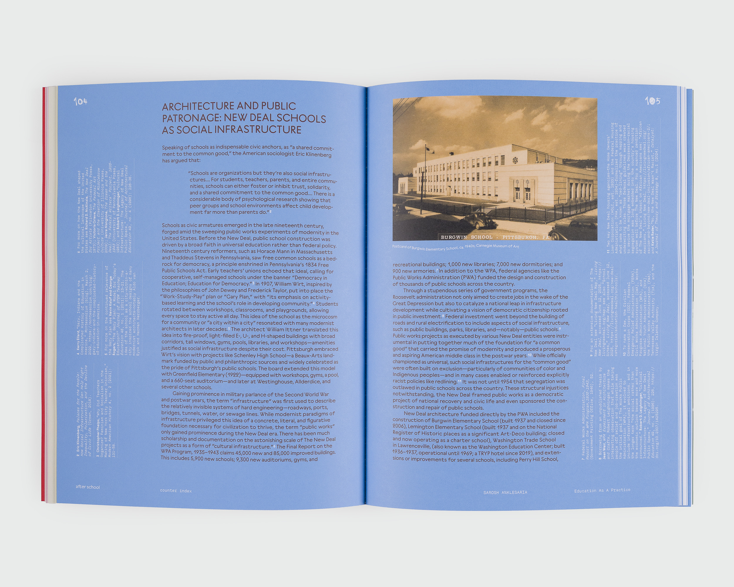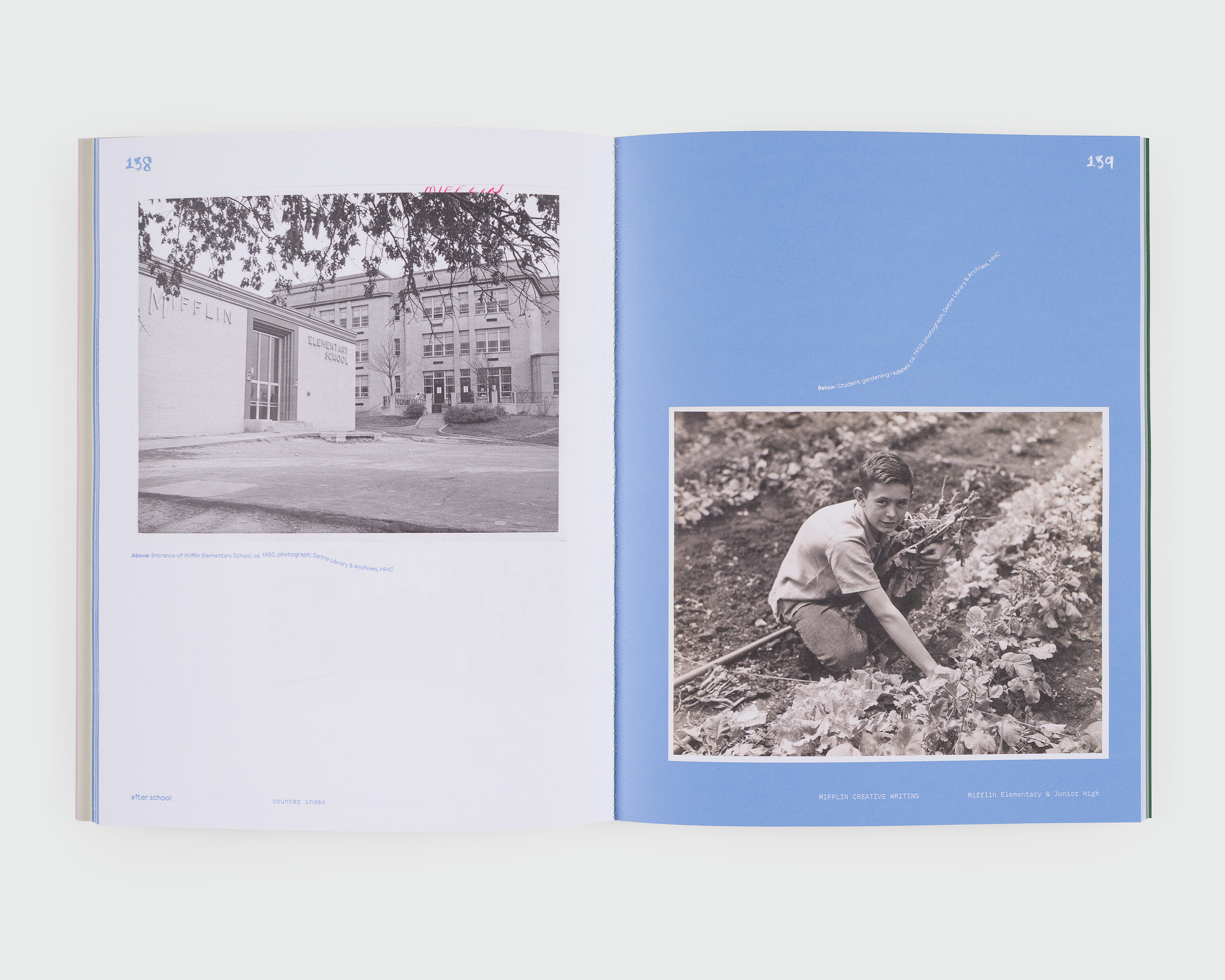 the exhibition of the same name, the publication follows classrooms, corridors, itinerant sites, and cooperative experiments to examine how public education has been shaped, organized, and contested across Pittsburgh’s educational landscape.