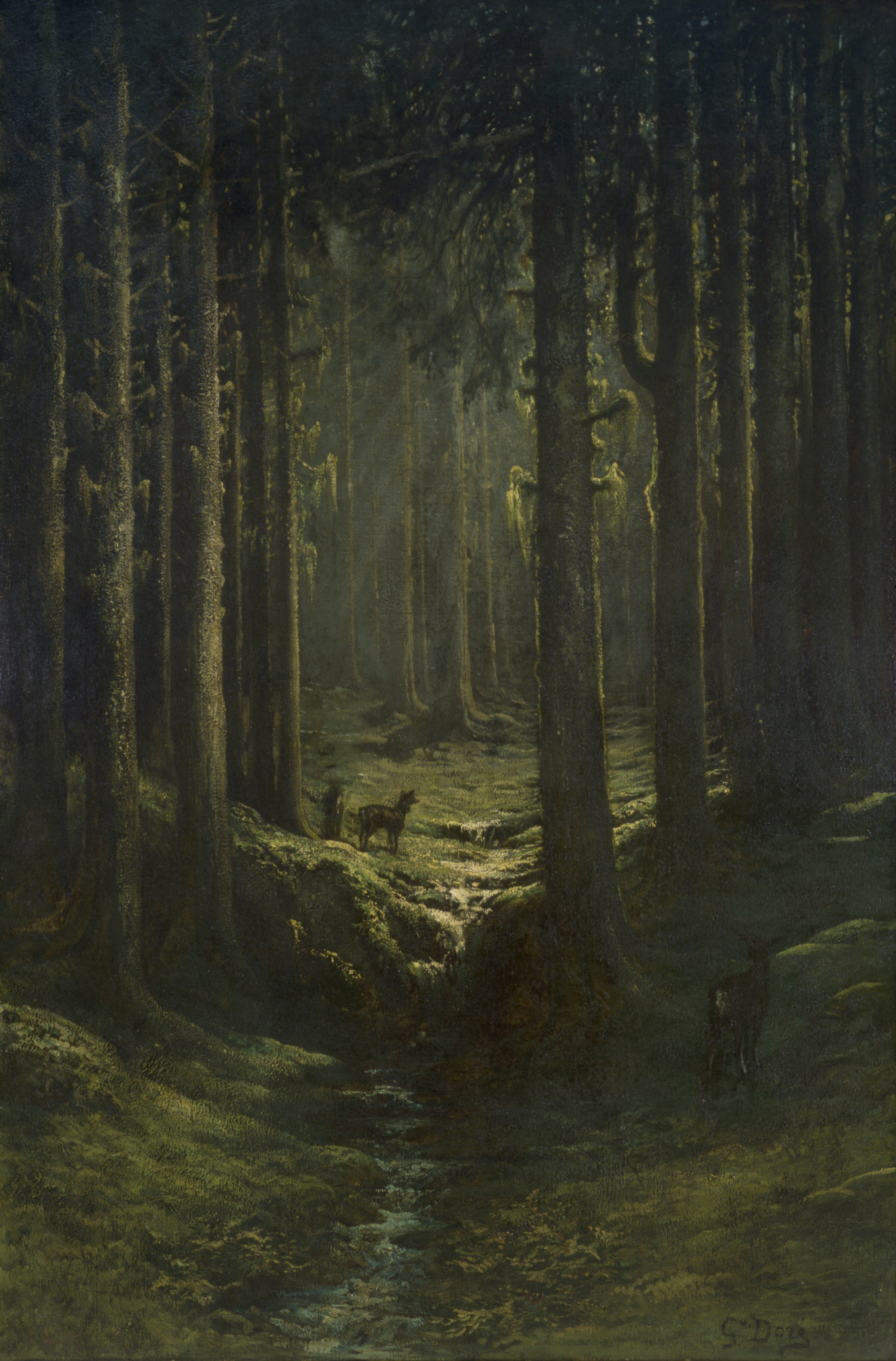 Deer in a Pine Forest (Vosges), Gustave Doré